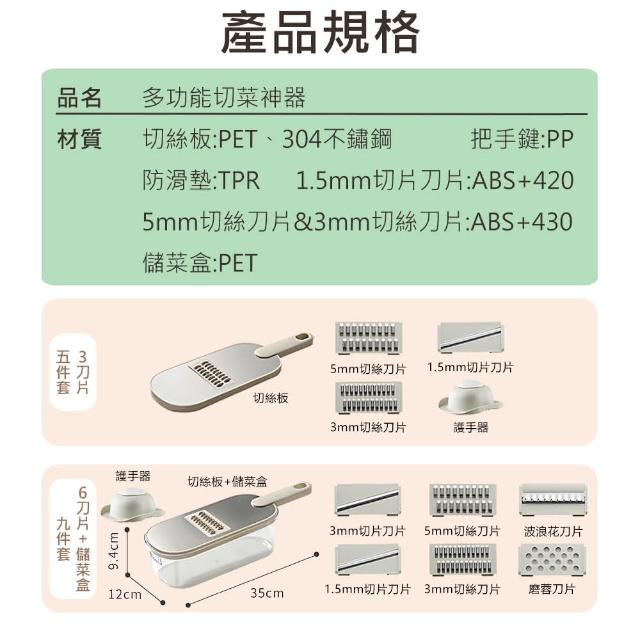 多功能切菜神器 九件套-6刀片+儲菜盒 切片器 切菜機 刨絲器 刨片器 磨泥器 切菜器 切菜神器 切絲器 切蔥機 磨蓉器