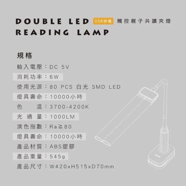 KINYO觸控親子共讀夾燈 PLED-4195護眼燈 LED檯燈 床頭燈 桌燈 夾燈 USB檯燈