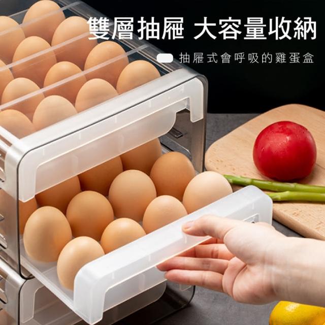 透氣雙層雞蛋盒雞蛋盒 雞蛋格 雞蛋收納 透明雞蛋盒 抽屜雞蛋盒 保鮮盒 分類盒 冰箱收納盒