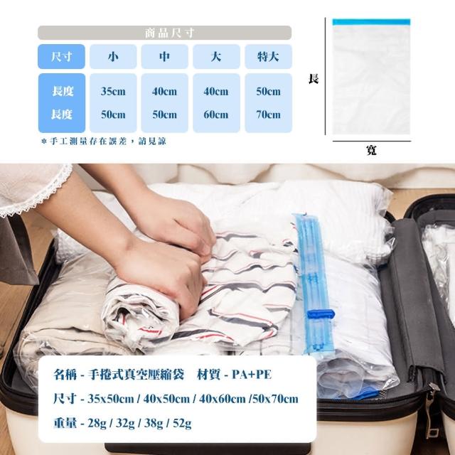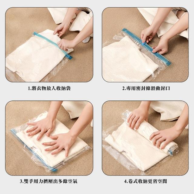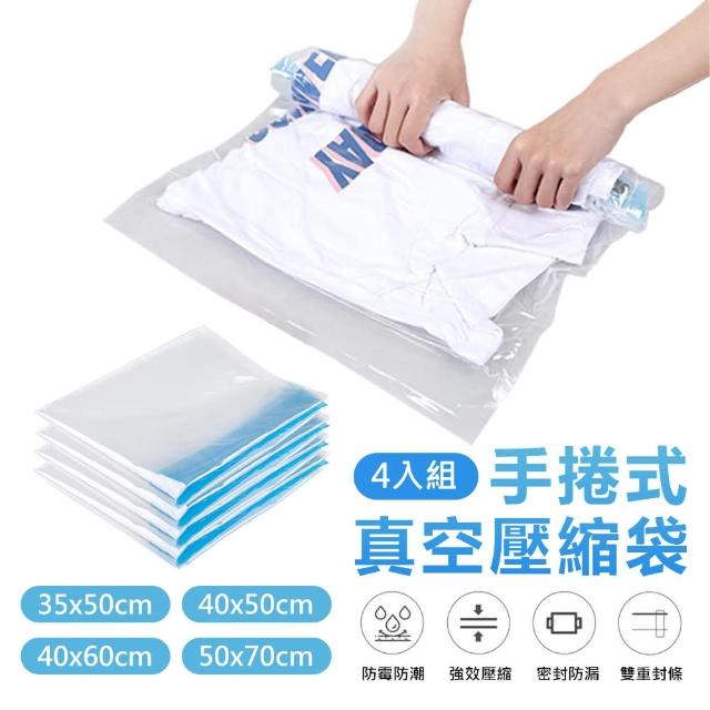 手捲式真空壓縮袋-4件組 免抽氣壓縮袋 收納袋 旅行袋 真空袋 旅行收納 衣物收納袋 棉被收納袋