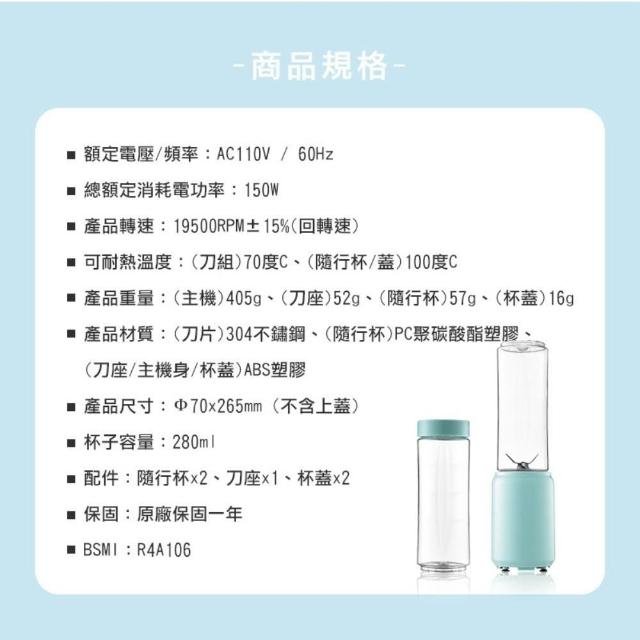 KINYO迷你隨行杯果汁機-雙杯 JR-191 家用榨汁機 電動果汁杯 榨汁機 果汁機 隨行杯