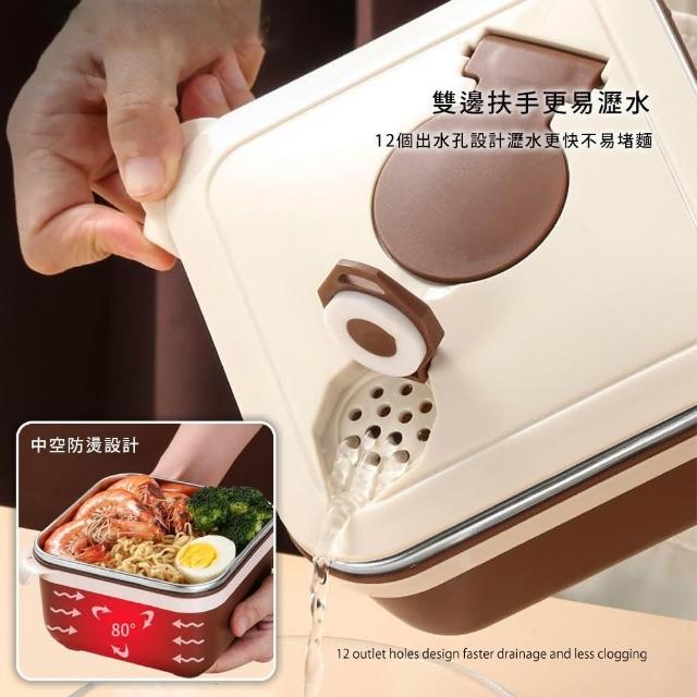 304不鏽鋼泡麵碗-1400ml 方形泡麵碗 瀝湯泡麵碗 便當盒 可瀝水 隔熱碗