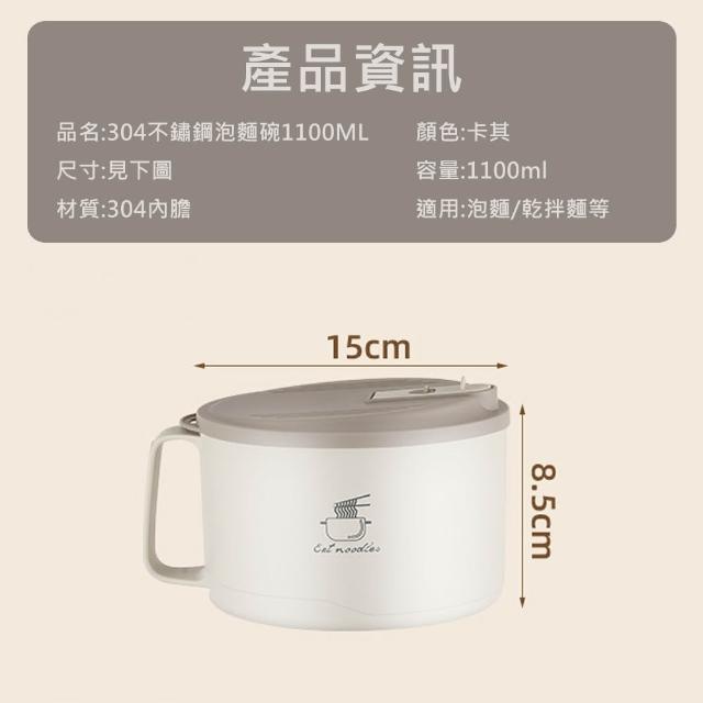 304不鏽鋼泡麵碗-1100ML 隔熱碗 不鏽鋼泡麵碗 便當碗 防燙泡麵碗 帶蓋泡麵碗 可瀝水泡麵碗