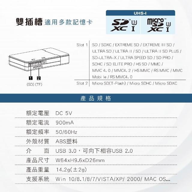USB 3.0讀卡機 隨插即用 SD卡轉接器 雙插槽讀卡機 記憶卡讀取機
