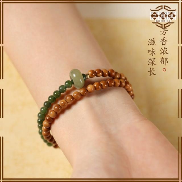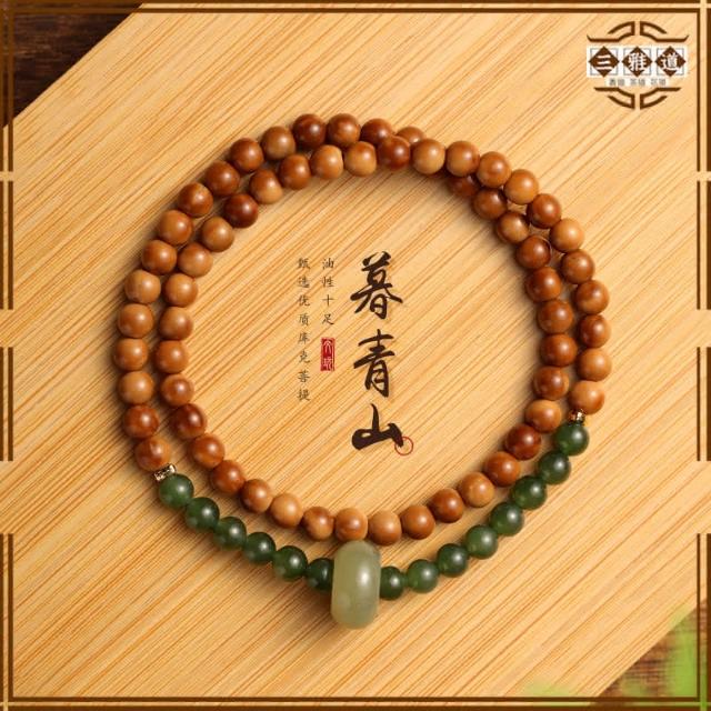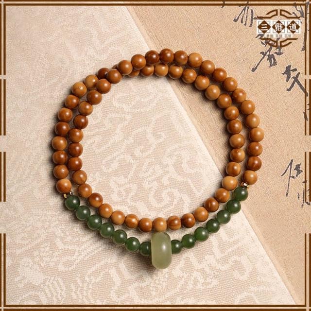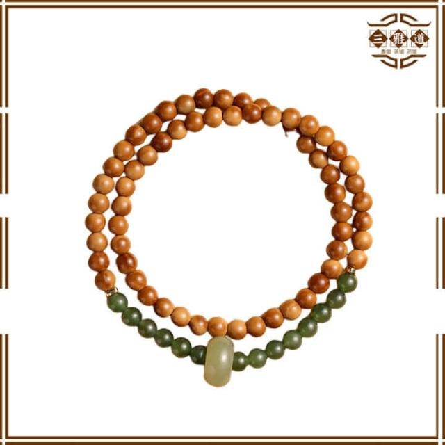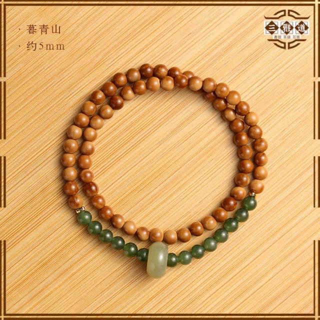 三雅道 暮青山國風高拋庫克菩提搭配和田玉雙圈跑環手鍊文玩佛珠手串