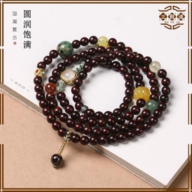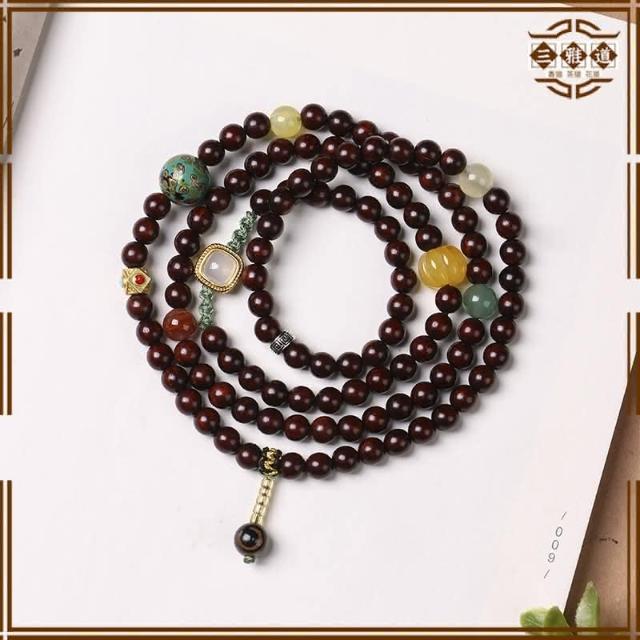 三雅道 紅木復古手鍊 天然老料 小葉紫檀手串108顆 印度佛珠 念珠項鍊男女
