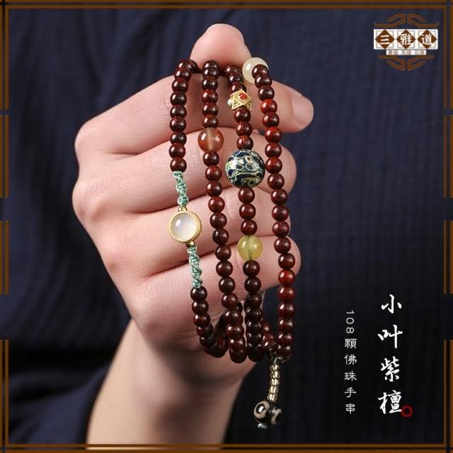 三雅道 紅木復古手鍊 天然老料 小葉紫檀手串108顆 印度佛珠 念珠項鍊男女