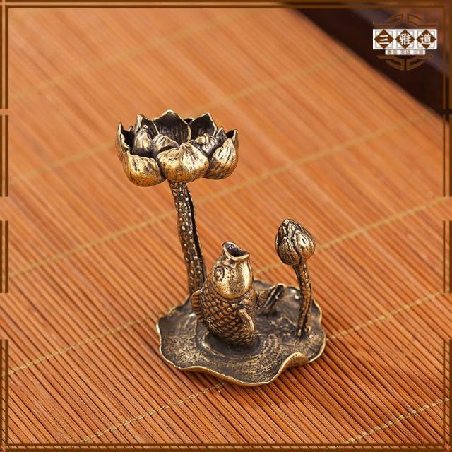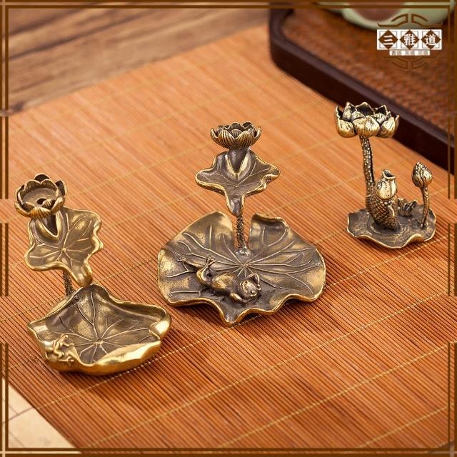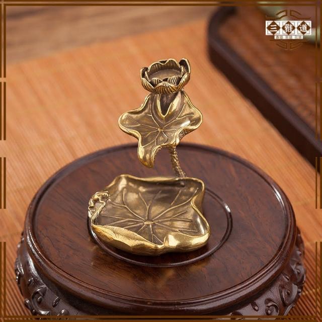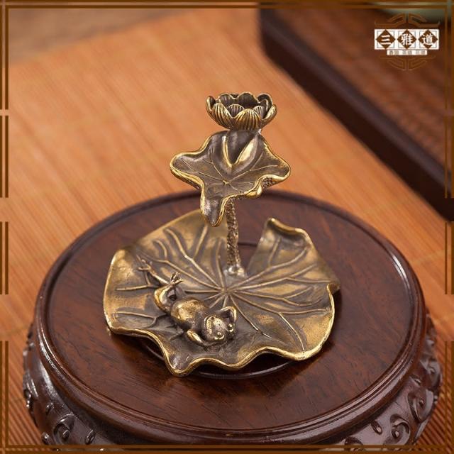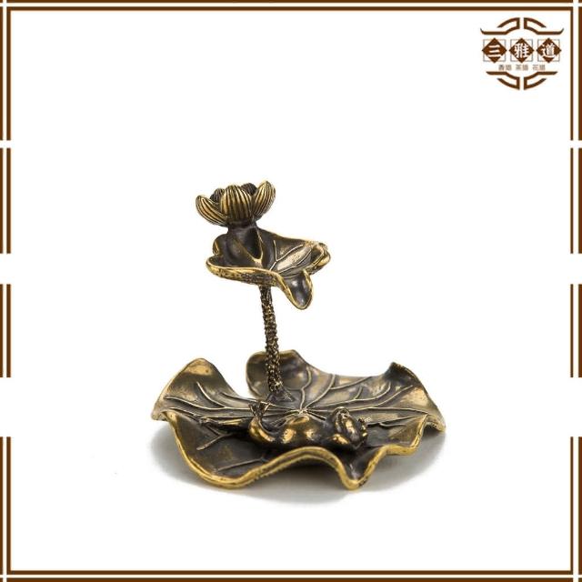 三雅道 純銅荷葉蓮花倒流香擺件實心黃銅青蛙荷花池塘意境香架香托工藝品