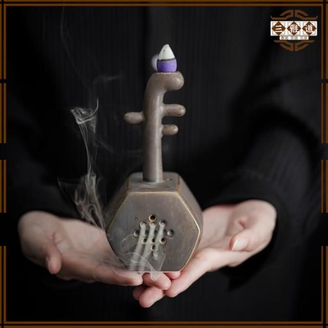三雅道 古琴觀煙留煙香爐 創意倒流香爐陶瓷 流香香爐 茶室擺件 沉香檀香爐
