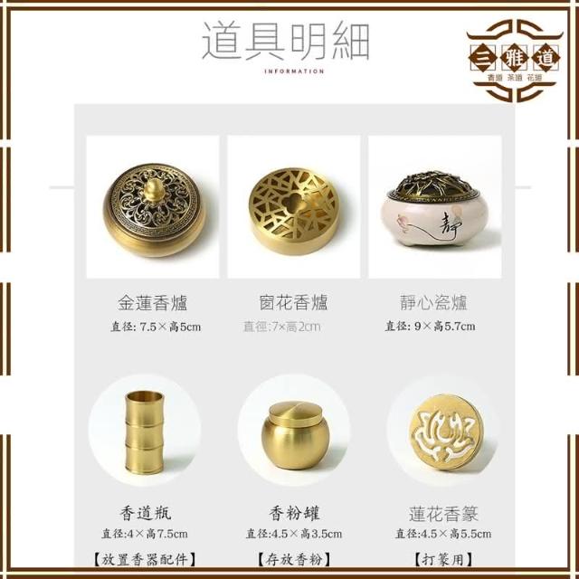 三雅道 黃銅香道用具入門套裝 家用香爐工具器具用品 托盤 香粉瓶 打香篆 模具