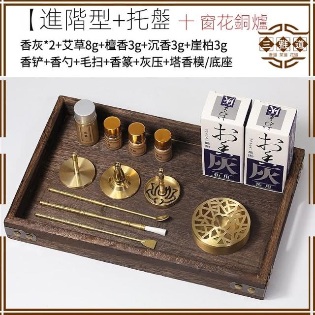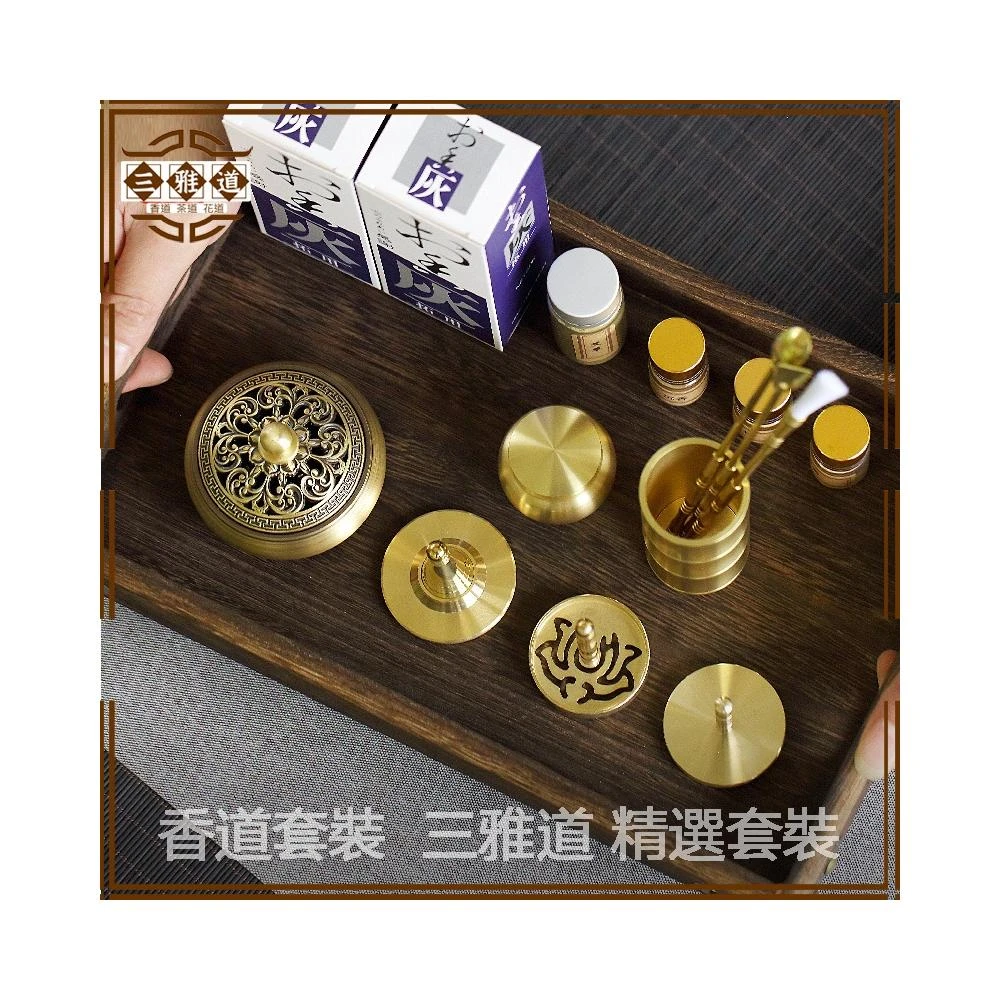 三雅道 黃銅香道用具入門套裝 家用香爐工具器具用品 托盤 香粉瓶 打香篆 模具