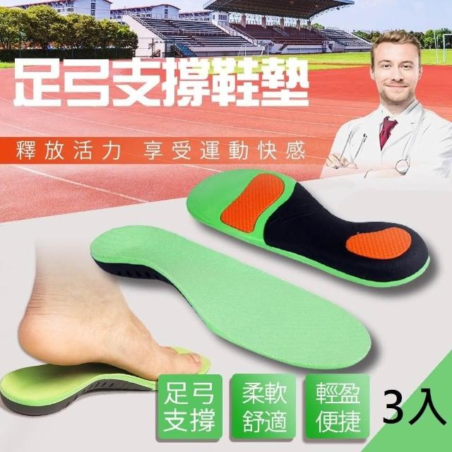 東谷鞋廠機能運動足弓鞋墊 3雙組(運動鞋墊 足底支撐筋膜 減壓鞋墊 高支撐足弓 扁平足 除臭鞋墊)