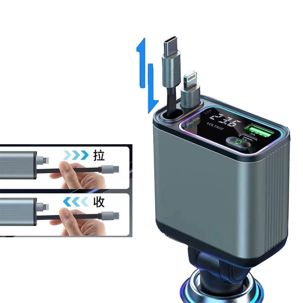 伸縮車充 自帶線車充 車用充電器 車充 車用充電器 車用充電座 車充頭 點煙器 汽車充電器 汽車充電 汽車手機充電器