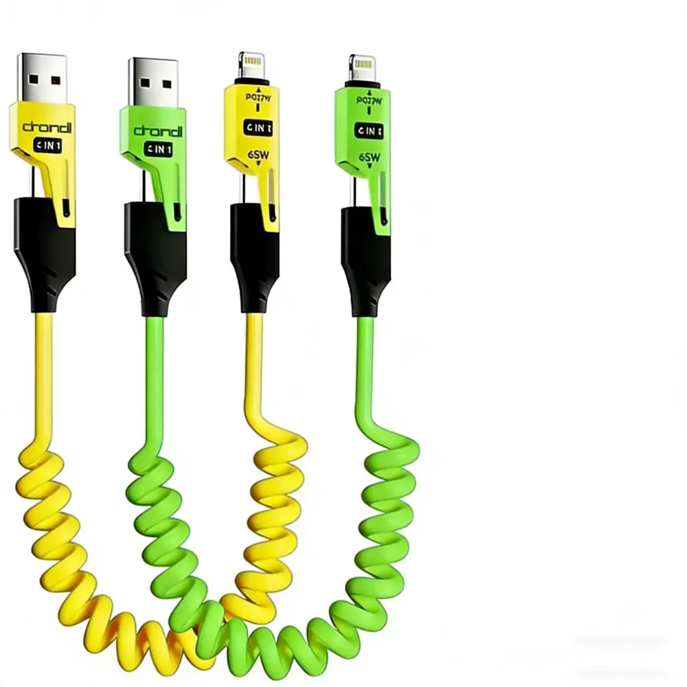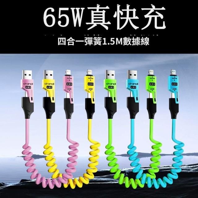 車載超級快充65W彈簧數據線四合一伸縮