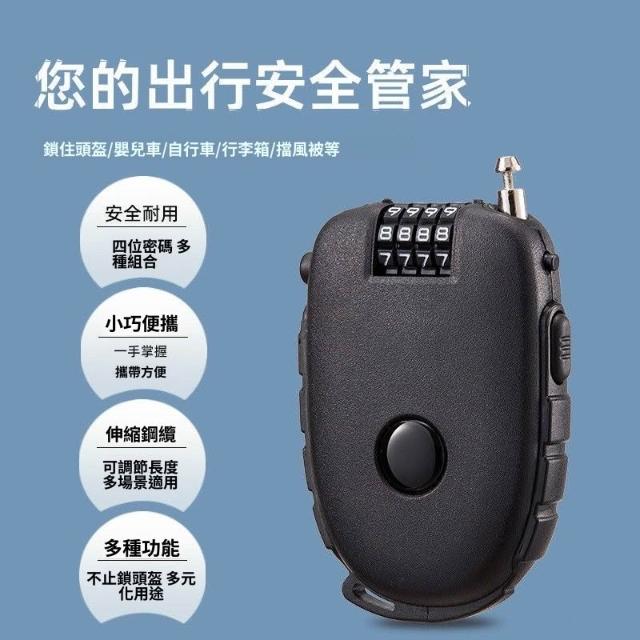 電動車摩托車頭盔防盜伸縮鋼絲鋼絲繩密碼鎖鎖頭便攜