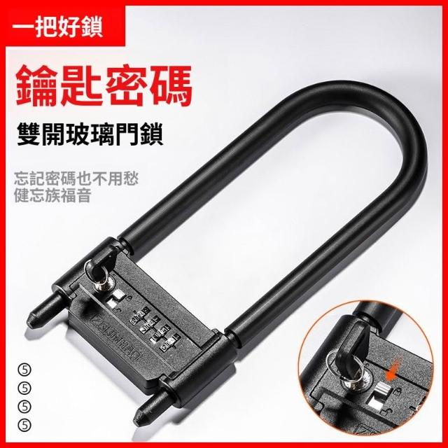 玻璃門鎖密碼U型鎖 密碼鎖U形鎖U加長雙開門 防剪防盜鎖店鋪插鎖