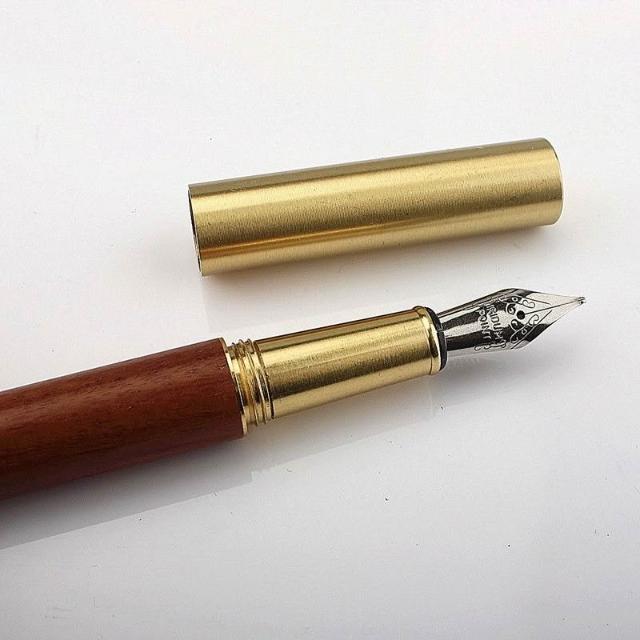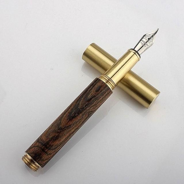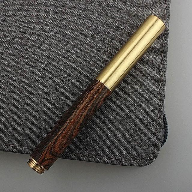 迷你短款口袋老式復古檀木鋼筆便攜小巧黃銅木製學生練字筆墨水筆
