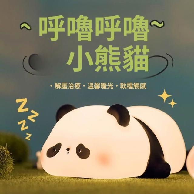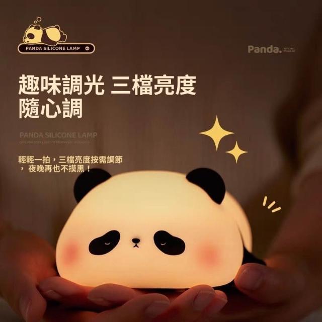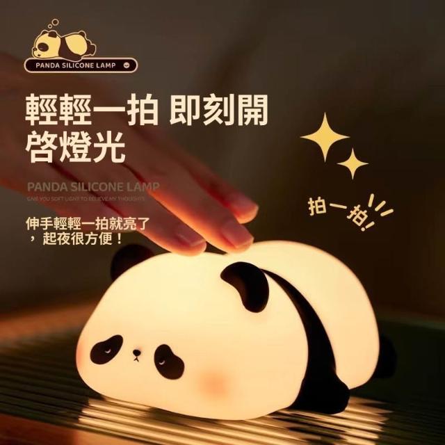 熊貓臥室牀頭伴睡小夜燈生日禮物檯燈硅膠睡眠兒童伴睡護眼拍拍燈