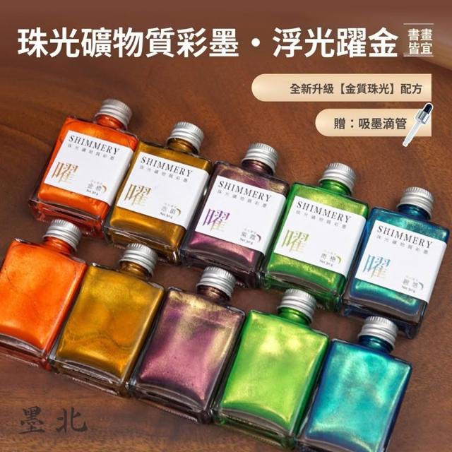 墨北雲舍彩色墨汁珠光閃礦物質彩墨珠光水彩顏料爆閃墨汁小楷毛筆