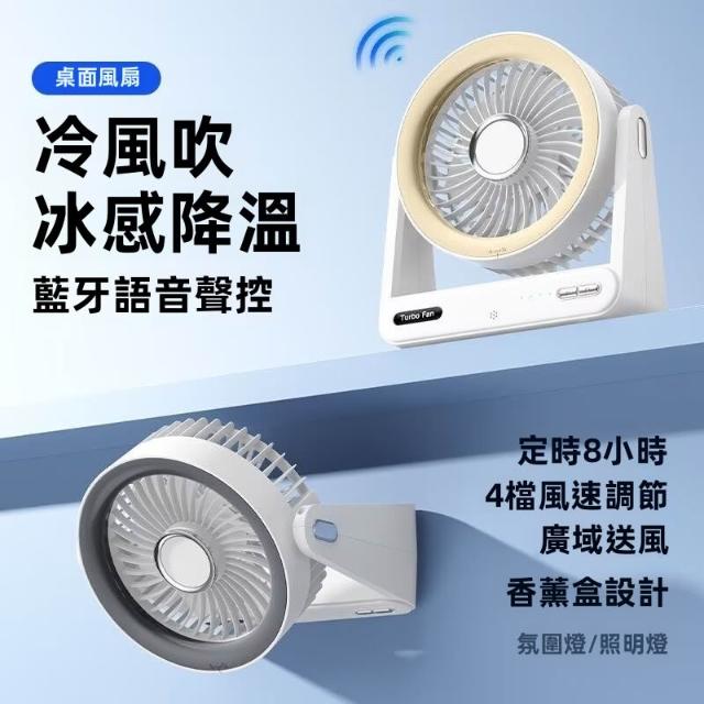110V智能語音聲控桌面小風扇 充電風扇家用 便攜學生宿舍 帶香薰盒風扇 暖光照明燈 四擋柔風調節 持久續航 臺扇掛扇二