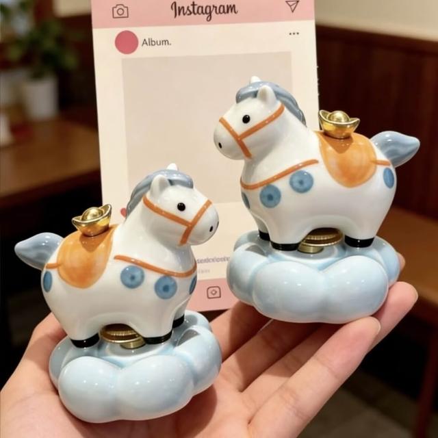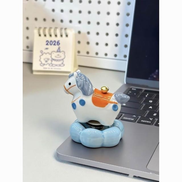 桌上擺飾 生日禮物 旋轉馬 吉祥物 馬上有錢 陶瓷馬 陶瓷2026新款 桌面擺件 轉轉小馬吉祥物 喜慶装饰旋轉小馬