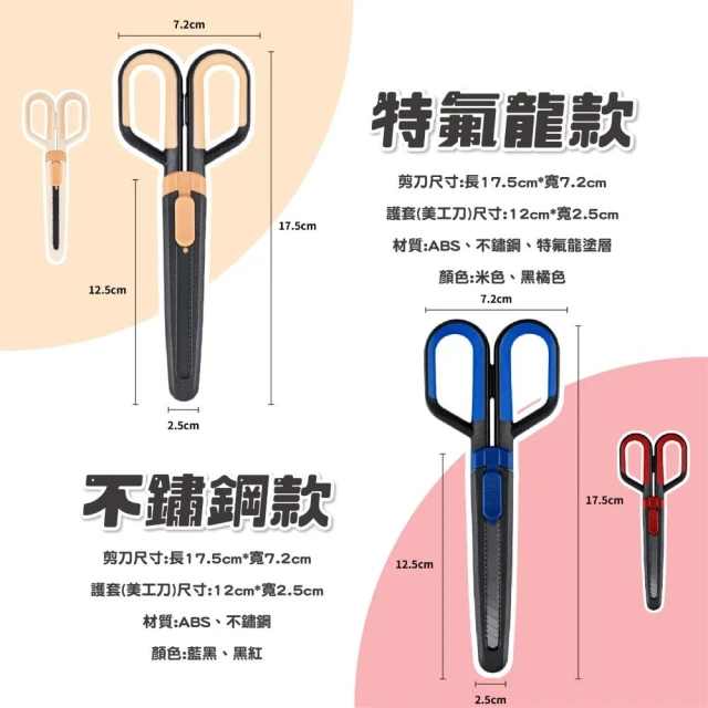 二合一美工剪刀 剪刀 美工刀 特氟龍剪刀 不鏽鋼美工刀 小美工刀 大美工刀 文具 不鏽鋼 文具用品 辦公室用品