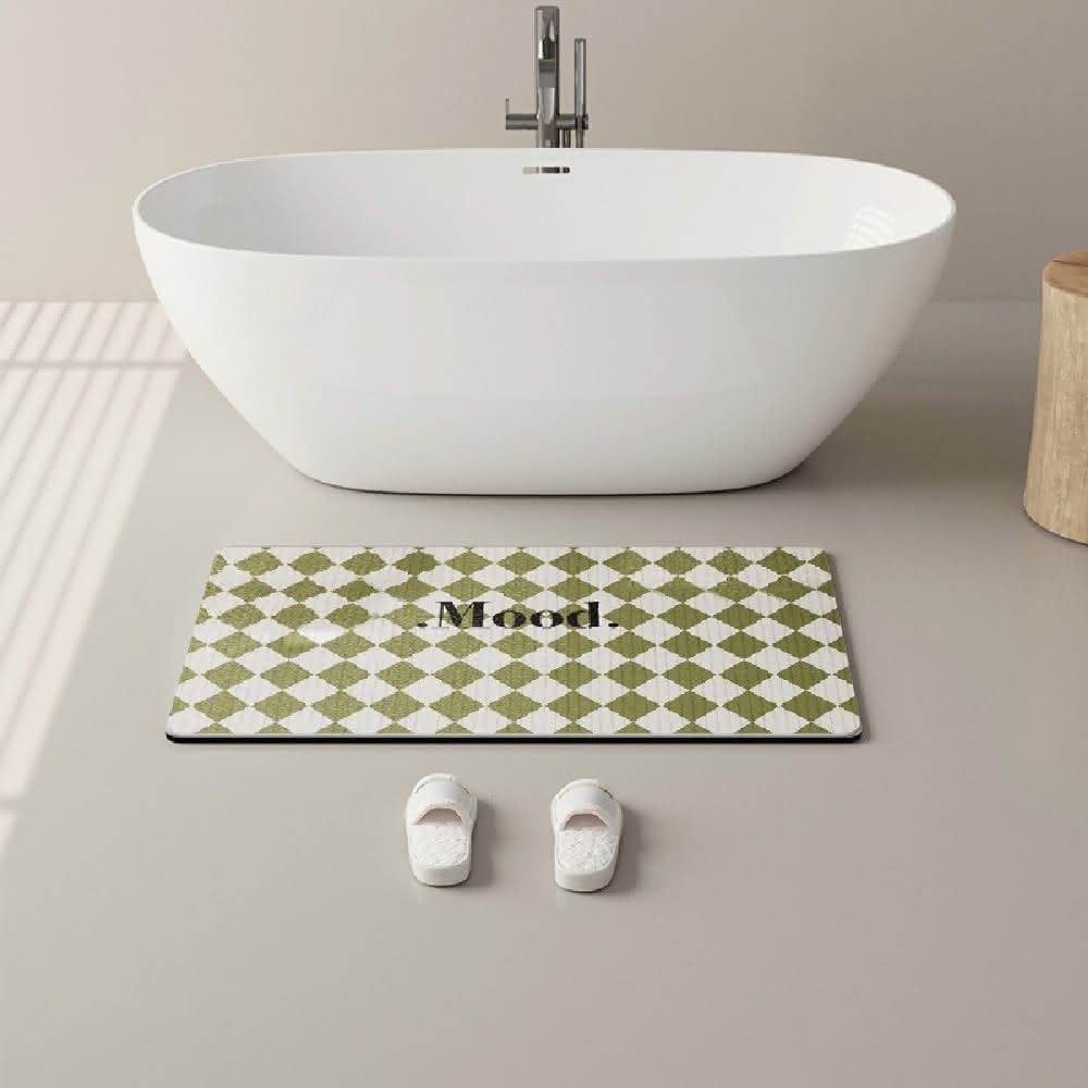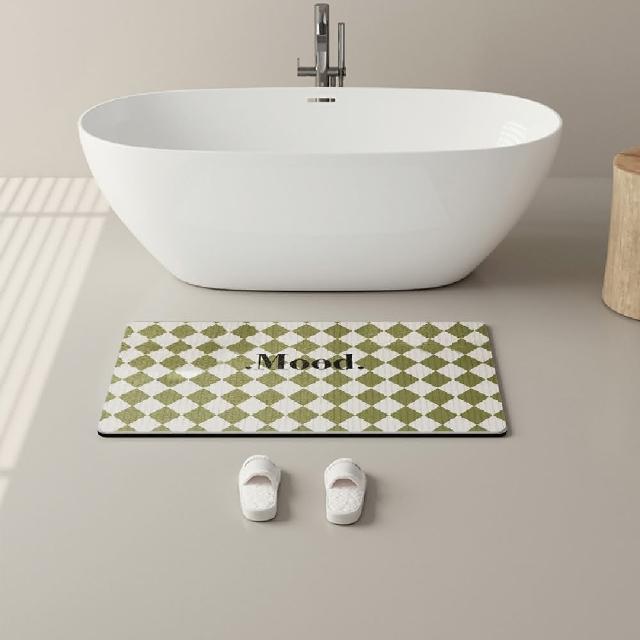 帕斯特收納生活硅藻泥地墊 PU皮革墊 居家 浴室 臥室 快速吸水 耐磨 白綠棋盤格40*60(地墊)
