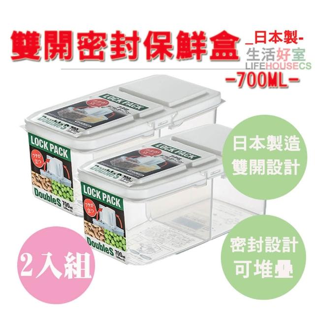 lifehousecs 生活好室長形密封雙開式保鮮盒 700ml 2入組(雙開式保鮮盒/雙開保存容器/雙開式密封收納盒)