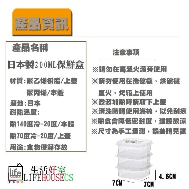 lifehousecs 生活好室方型保鮮盒 200ml 3入(保鮮盒/副食品保鮮盒/收納盒)
