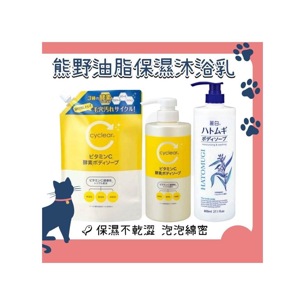 KUMANO YUSHI日本 熊野油脂 麗白薏仁保濕沐浴乳800ml/維他命C酵素沐浴乳500ml/補充包700ml 藏元日