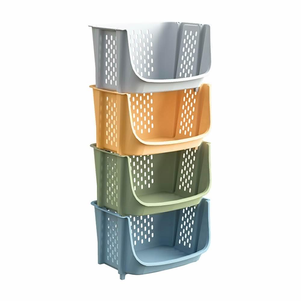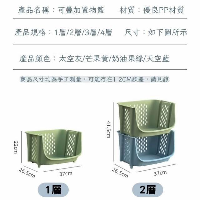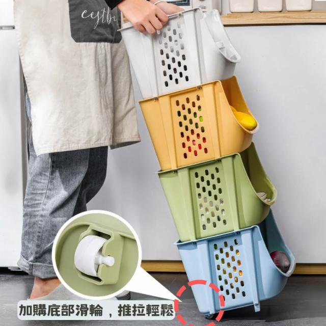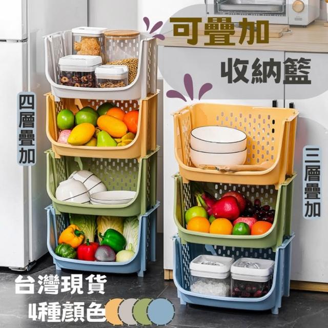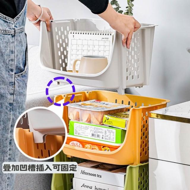 AS生活收納館可疊加收納籃四入組(廚房收納 多功能置物架 可疊加置物籃 收納籃 水果蔬菜籃 多層儲物架)