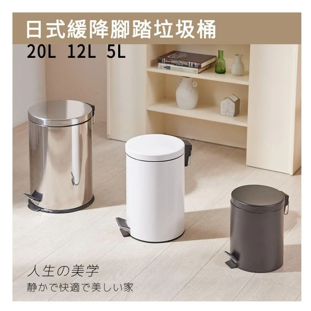 AS生活收納館日式掀蓋垃圾桶 12L(不銹鋼 廁所垃圾桶 腳踏垃圾桶 靜音垃圾桶 內桶可清洗 掀蓋垃圾桶)