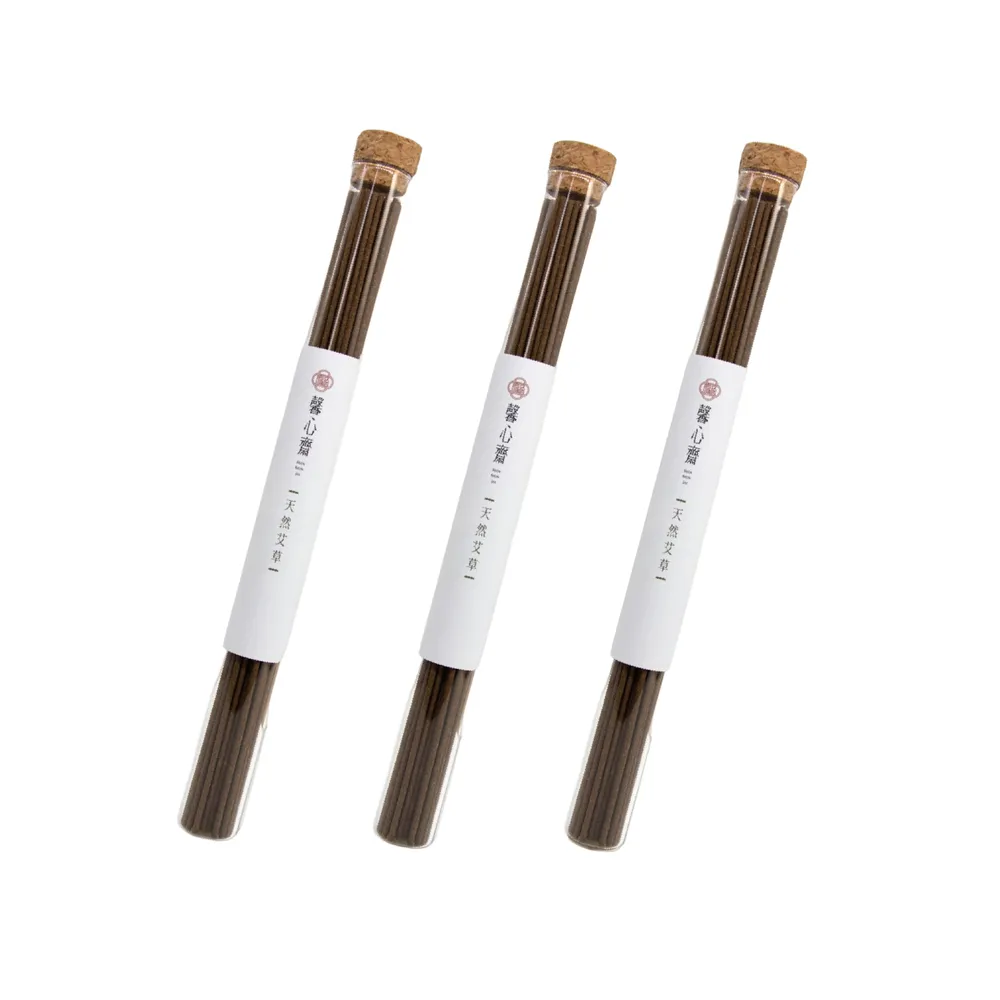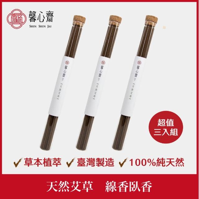 SHIN SHIN JAI 馨心齋艾草 線香 臥香 20g 三入組 贈香插 線香座(淨化 薰香 招財 除障 微煙 天然 煙供)