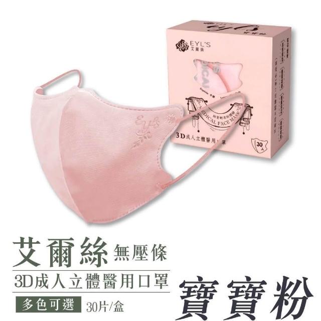 艾爾絲成人3D 無壓條立體醫療口罩 絲質輕柔新體驗 30入/盒 專品藥局