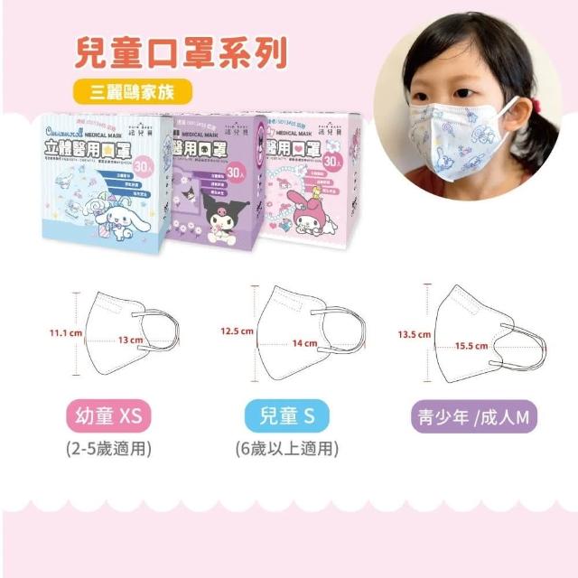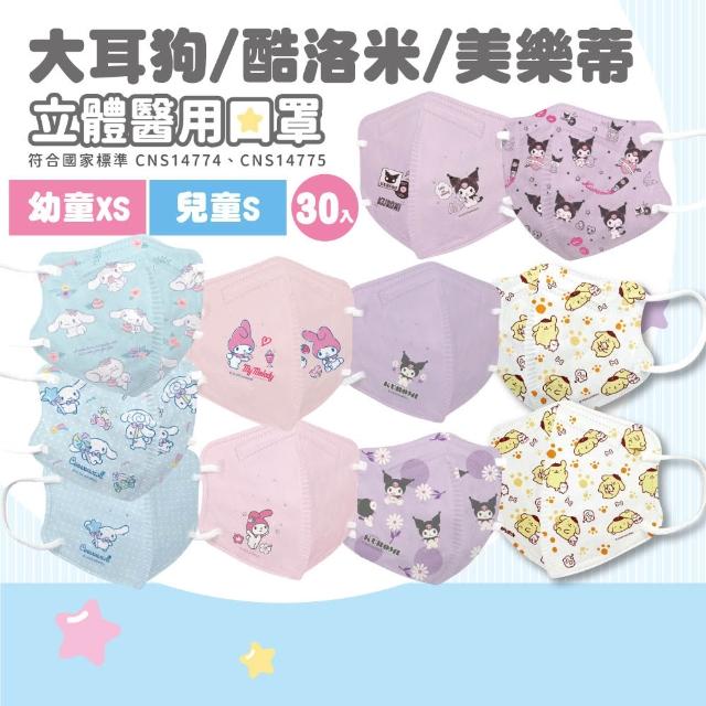 法兒貝 大耳狗/酷洛米/美樂蒂 立體醫用口罩 (S/XS 幼童/兒童) (2-5歲 6歲以上) 30片/盒 專品藥局