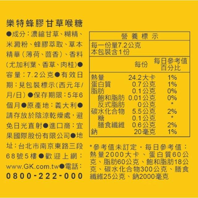 樂特樂特 蜂膠甘草喉糖 (五倍甘草 深層潤喉) 7.2g/盒 【2031448】