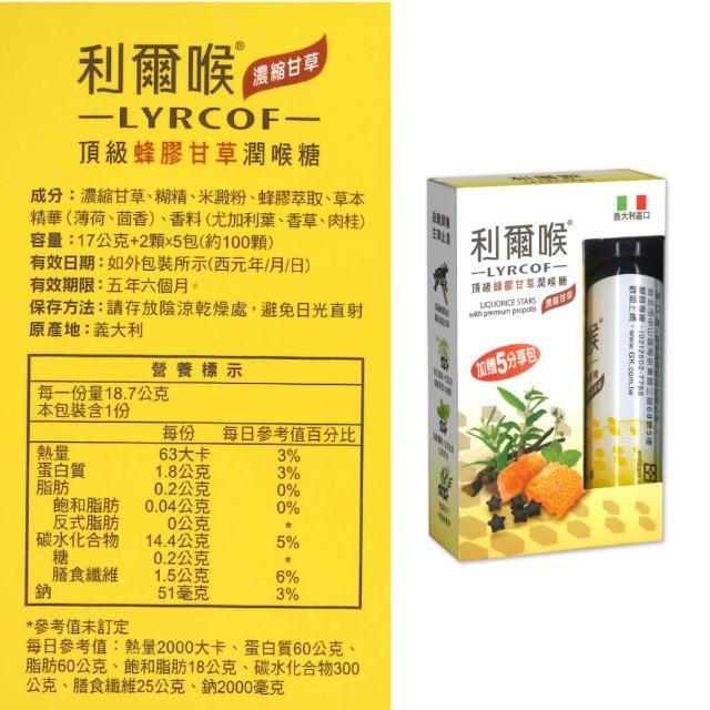 利爾喉 頂級蜂膠甘草潤喉糖 17g+5g/盒 (天然草本萃取精華) 專品藥局 【2030662】