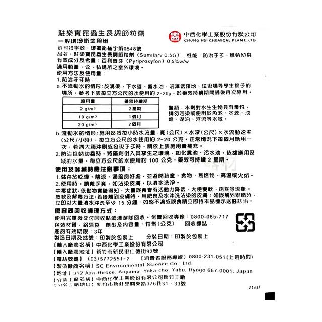 中西化學駐樂寶昆蟲生長調節粒劑 10gX8包 (防治 蚊子 孑孓 蛾蚋 中西化學 原廠公司貨) 專品藥局【2029155】