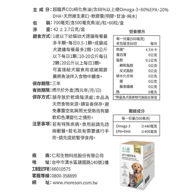 MORESON 木入森木入森 高EPA寵物魚油 60顆+30顆 (最高95%高濃度 好吸收) 專品藥局