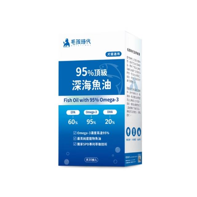 毛孩時代毛孩時代 95%頂級深海魚油 30顆/盒 (嚴選rTG型態魚油 高純度 高吸收 犬貓適用) 專品藥局【2028929】