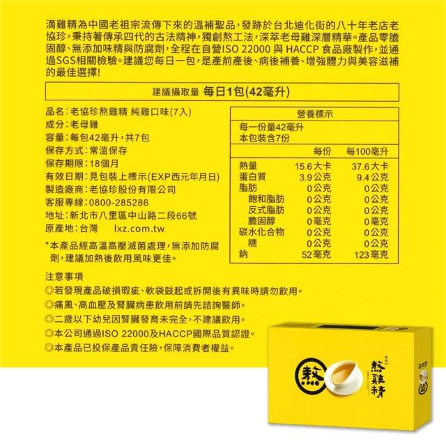 老協珍老協珍 熬雞精 純雞口味 42mlX7包/盒 (滴雞精) (母親節禮盒 長輩 送禮 伴手禮) 專品藥局