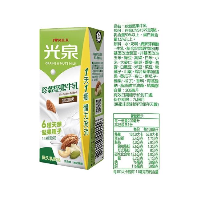 光泉光泉 珍穀堅果牛乳 (保久乳) 200mLx24瓶/箱 【2031400】