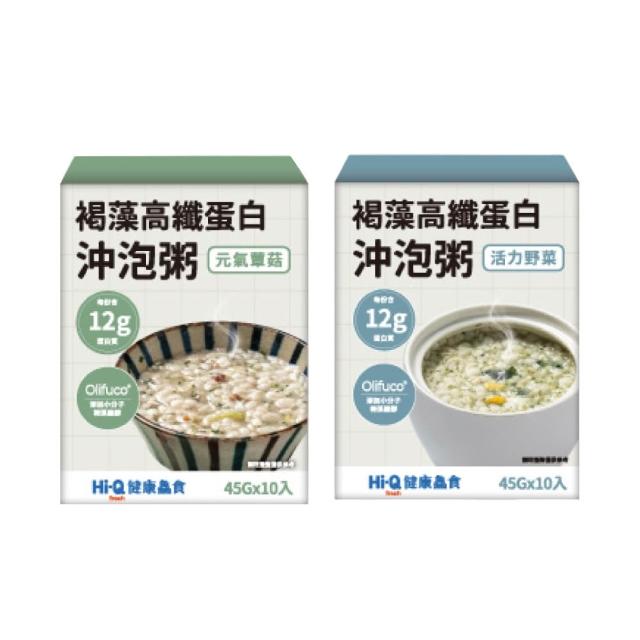 H i - Q F resh 健康鱻食 褐藻高纖蛋白沖泡粥 (元氣蕈菇/活力野菜) 45g/包 45gx10包 專品藥局