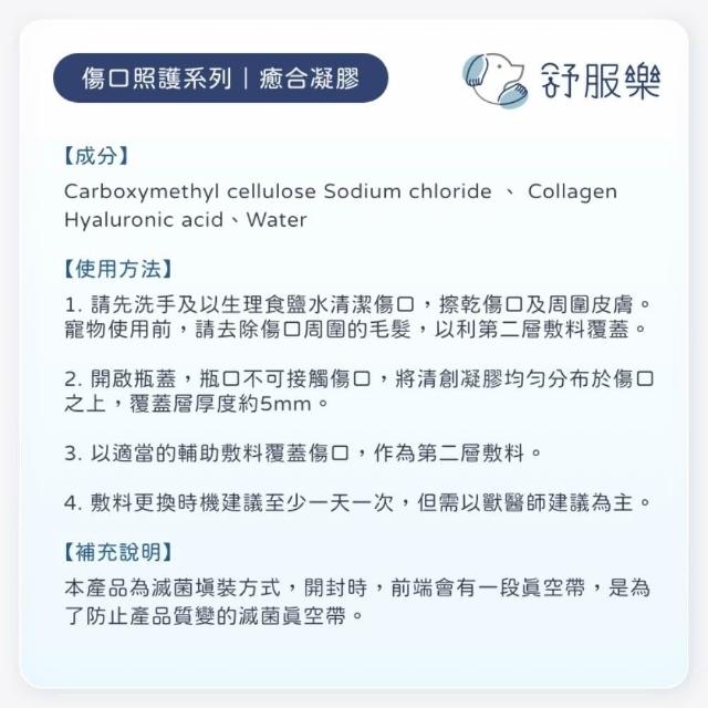 【舒服樂】寵物皮膚照護 傷口照護系列 癒合凝膠10ml(滅菌)