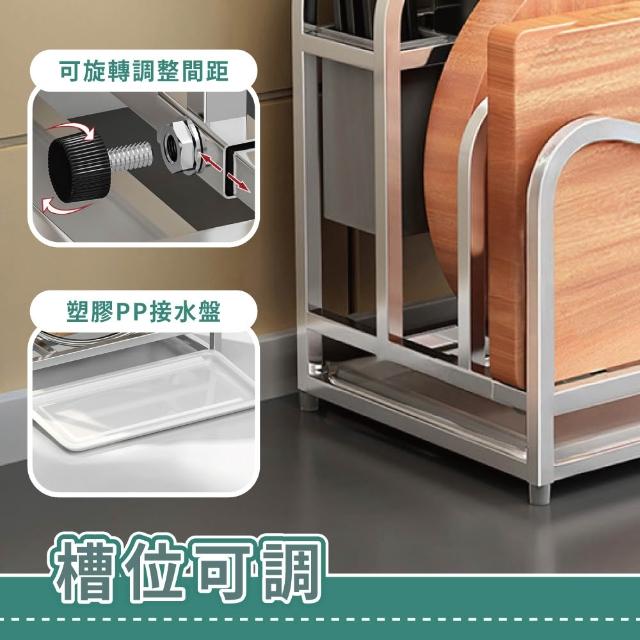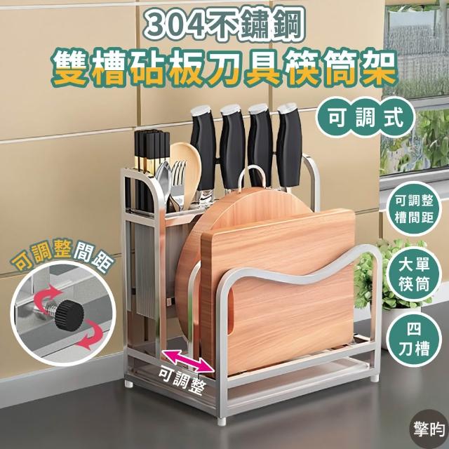 擎昀 304不鏽鋼 刀具架 砧板架 加大筷筒 雙槽可調間距 鍋蓋架 廚房收納架 瀝水架 刀架 贈接水盤+抹布