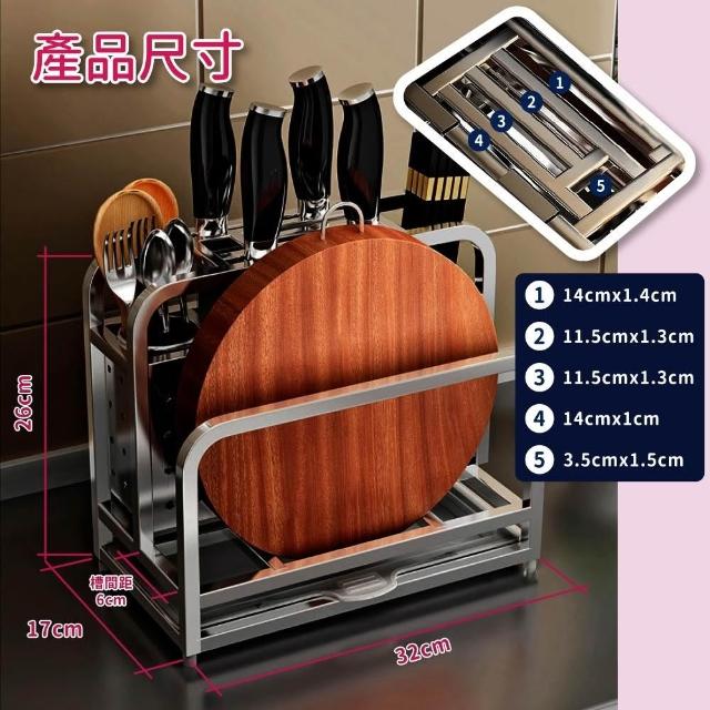 擎昀304不鏽鋼雙鋼杯筷筒單槽刀具砧板架🎁送加厚抹布+塑膠掛勾x4刀具架 刀架 鍋蓋收納 廚房收納 砧板架 刀架組