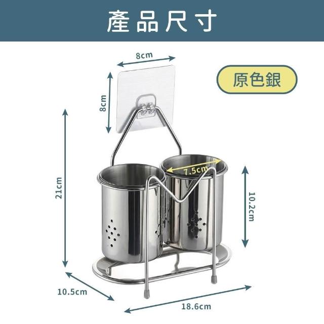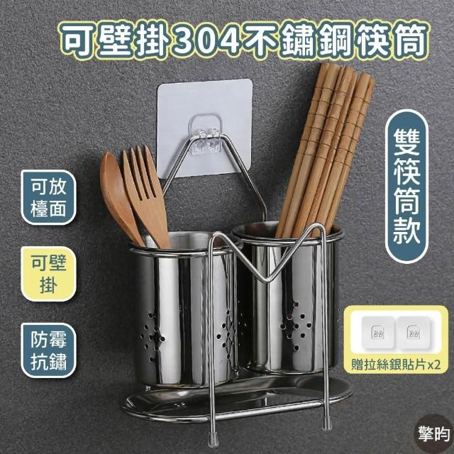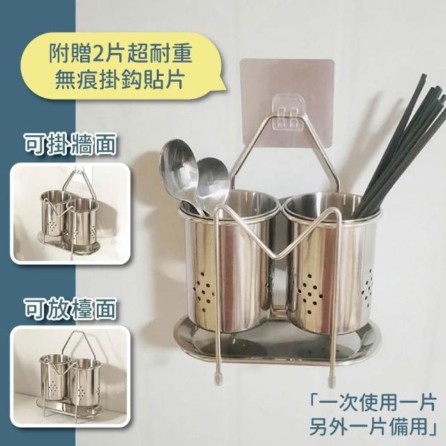 擎昀 304不鏽鋼筷子湯匙瀝水架 雙槽款🎁附送兩片無痕貼片 壁掛式筷筒 免打孔筷筒 筷子架 筷子瀝水架 筷子收納