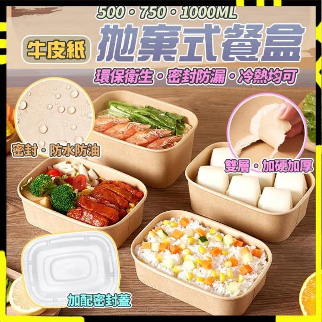 Flower拋棄式餐盒 點心盒 一次性餐盒 750ml(打包盒 牛皮紙餐盒 食品盒 便當盒 水果盒)