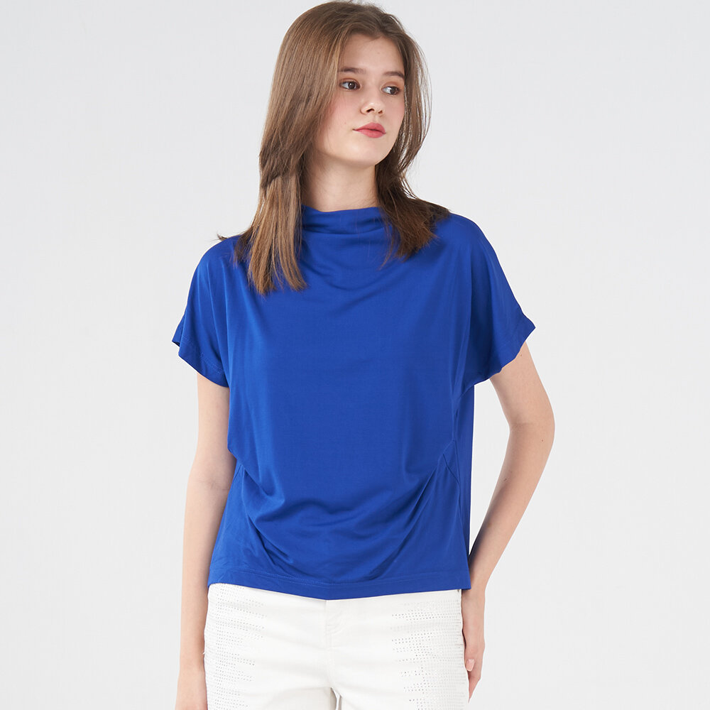 - 寶藍色短袖造型上衣
