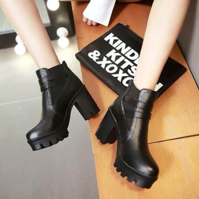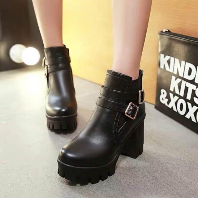 ❤️現貨+❤️(33-43碼)粗高跟英倫風馬丁靴 短靴 踝靴高跟短靴(高跟短靴 高跟踝靴)